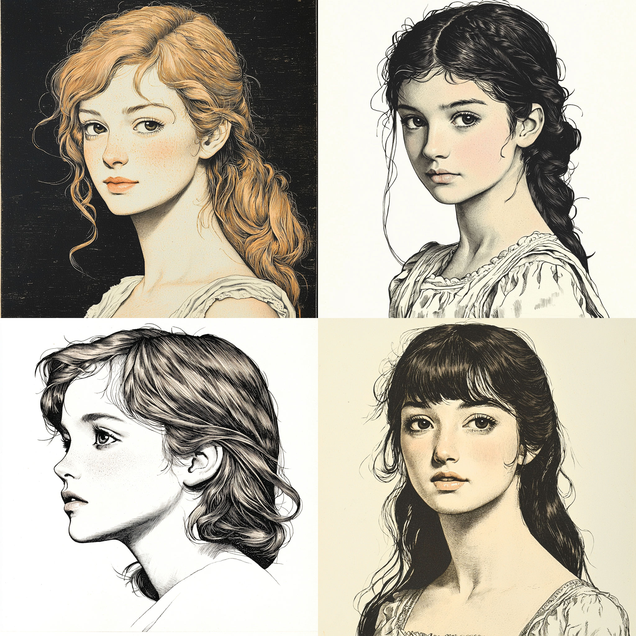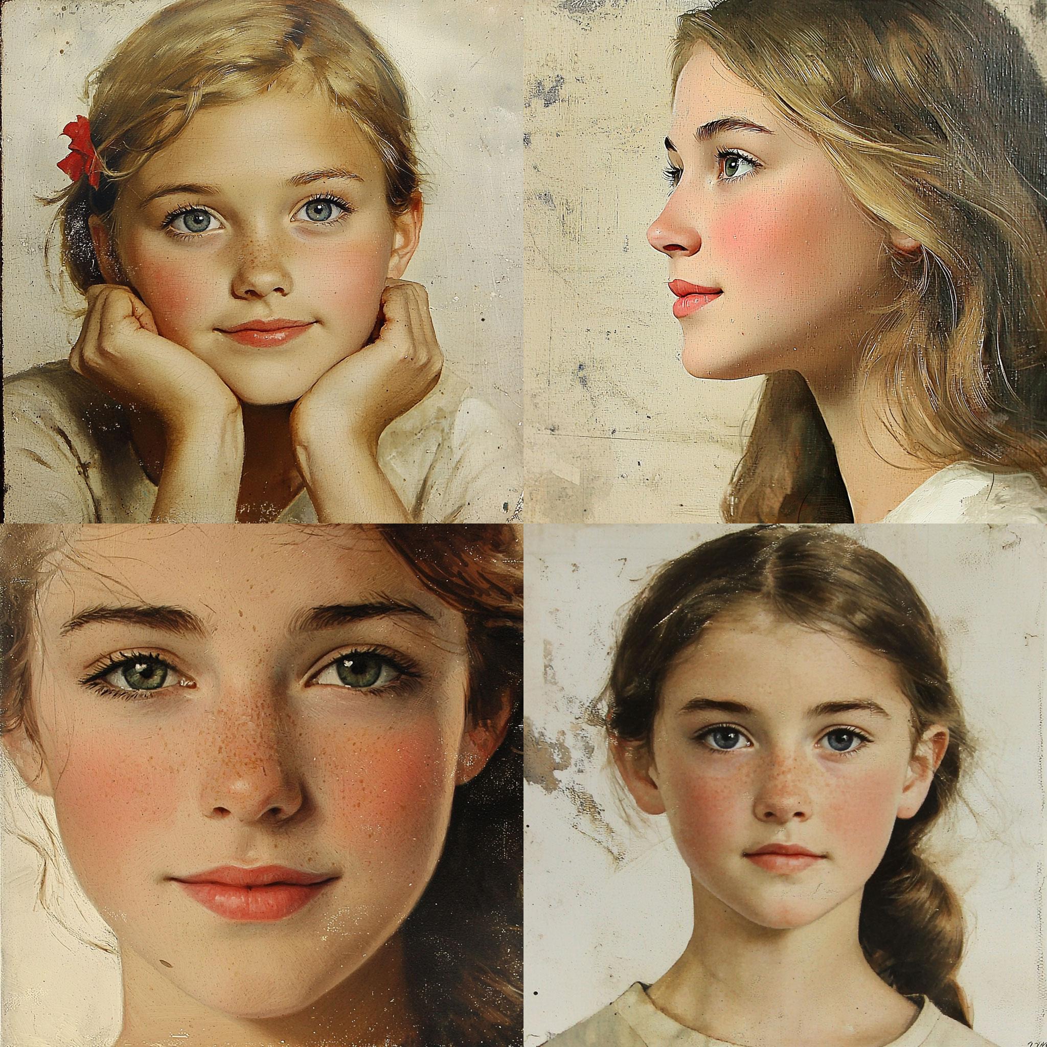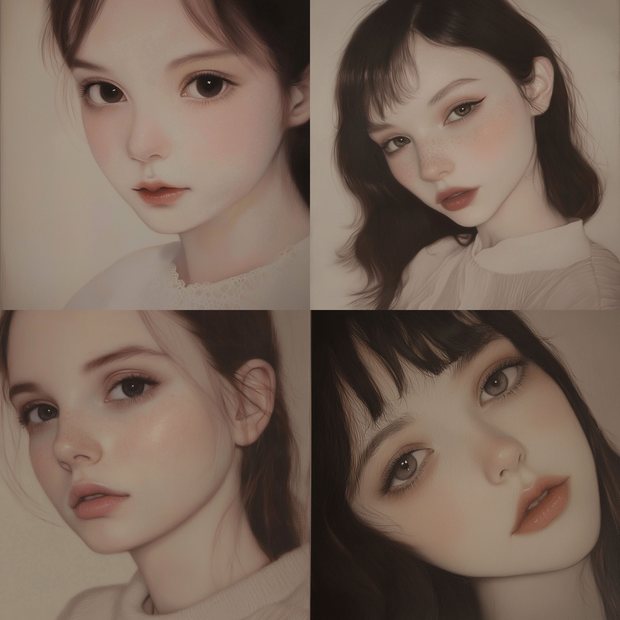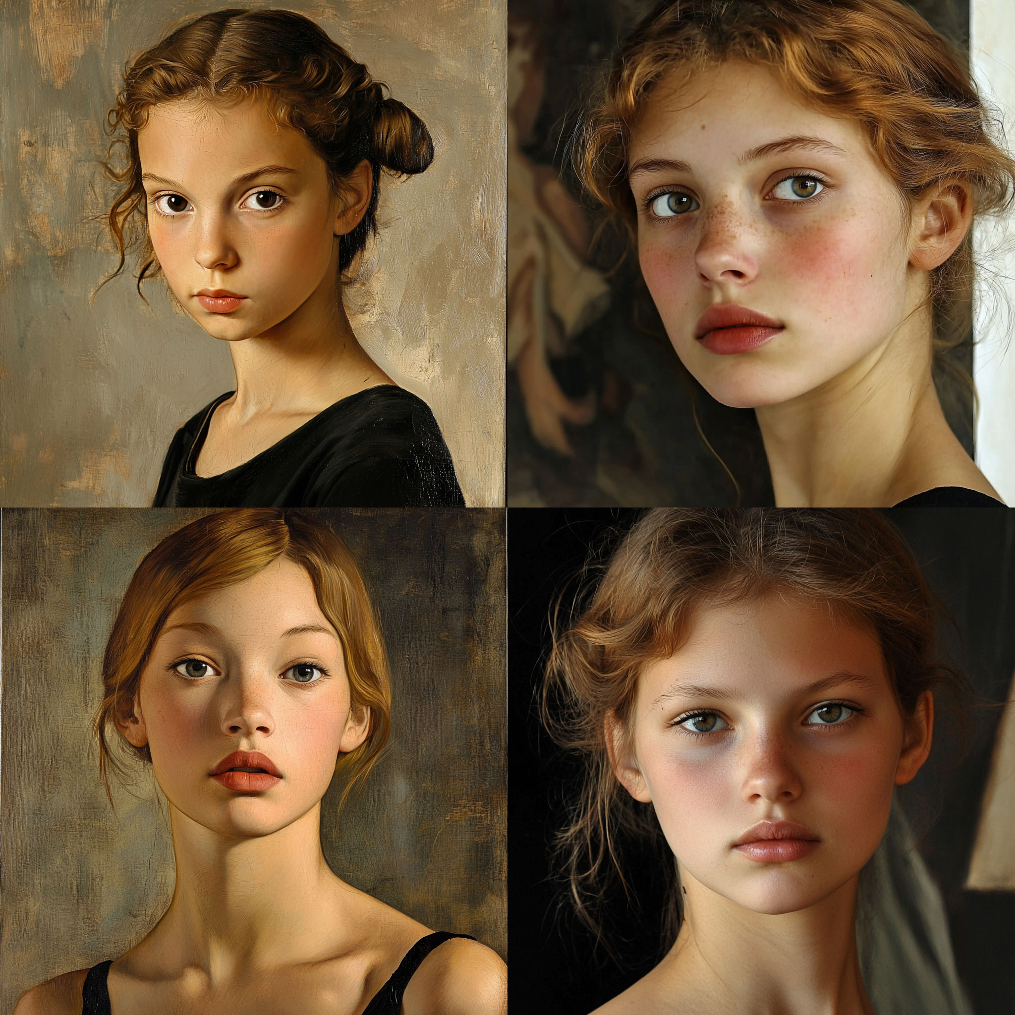 PROMPT: portraits of a girl --style raw --sref [NUMBER] --q 2 --v 6.1