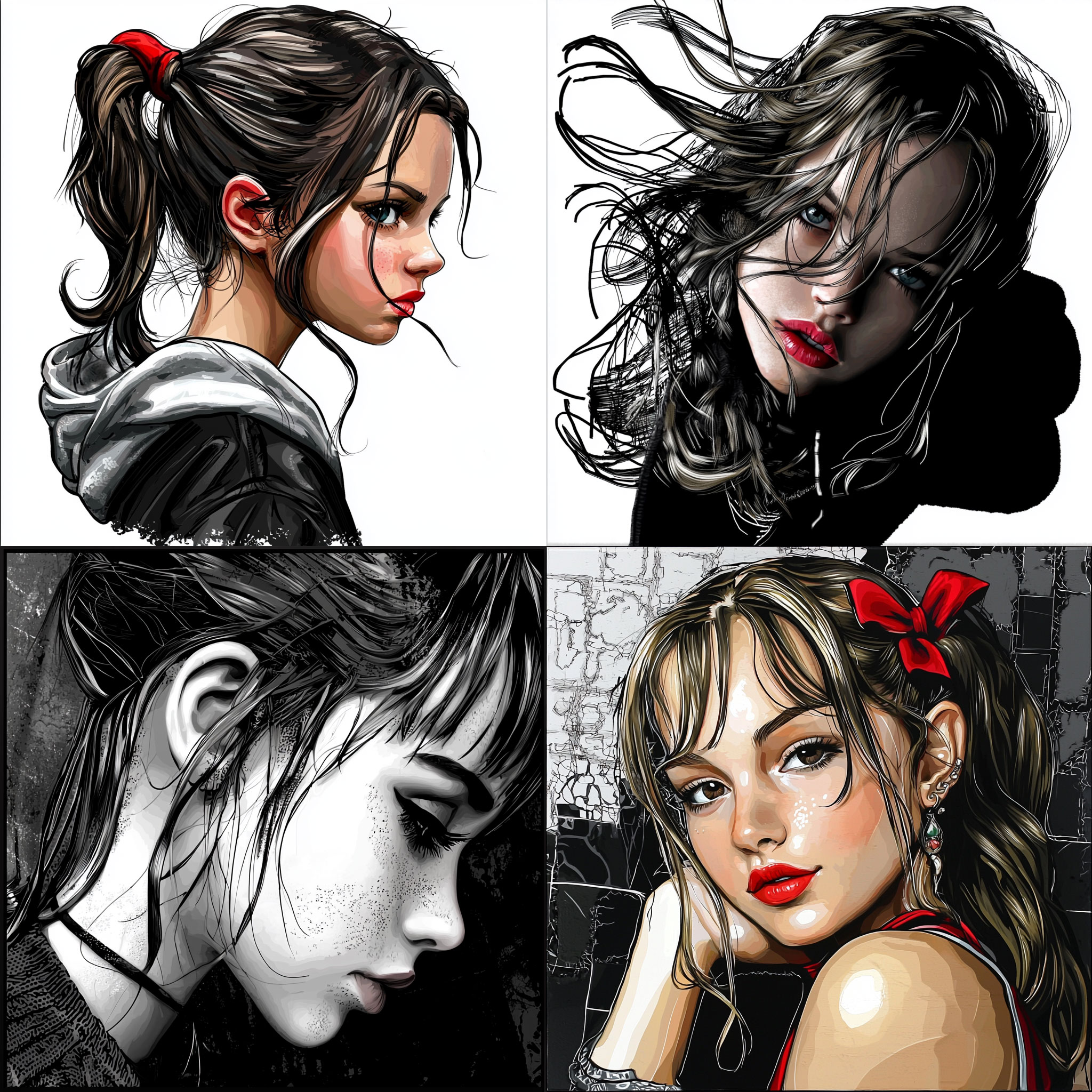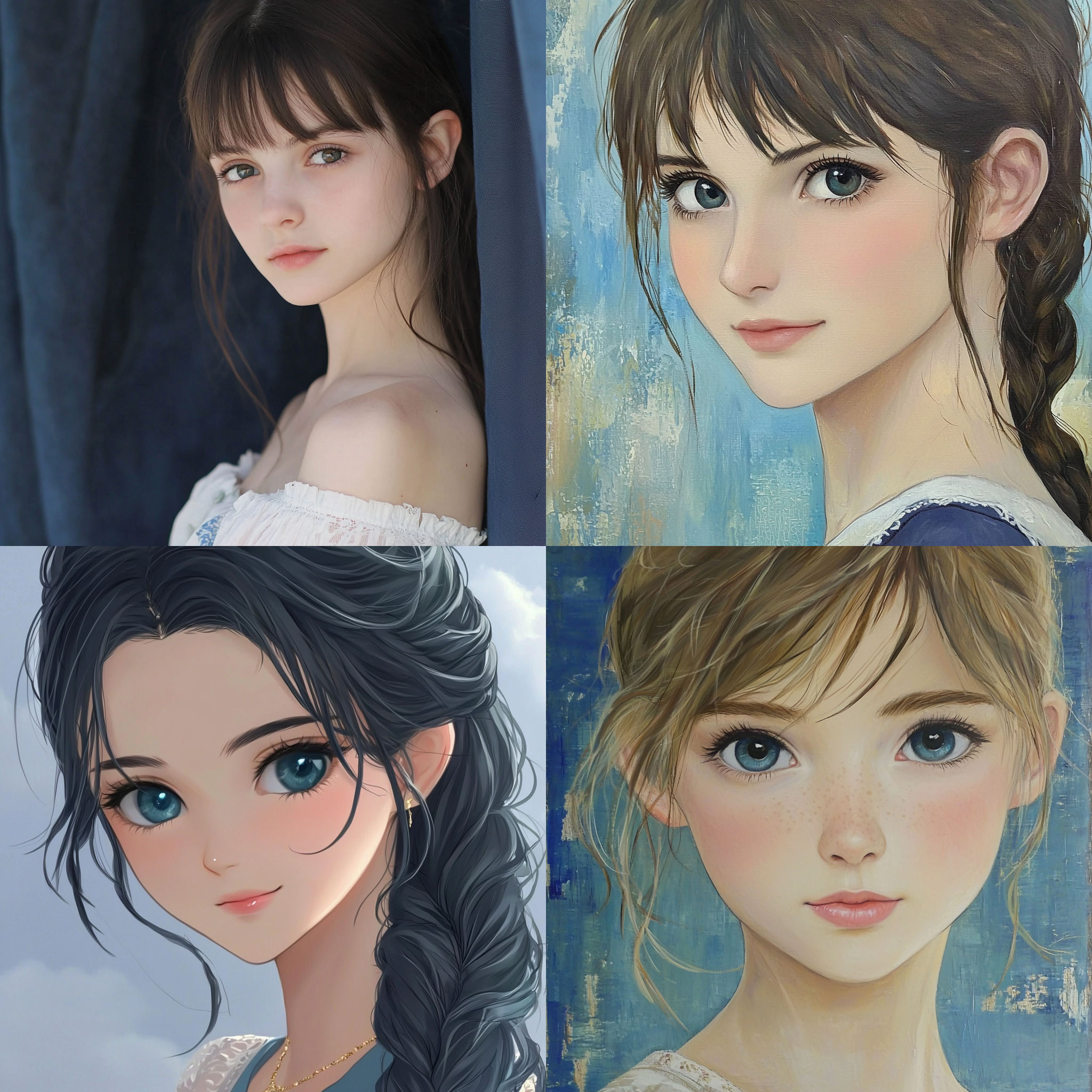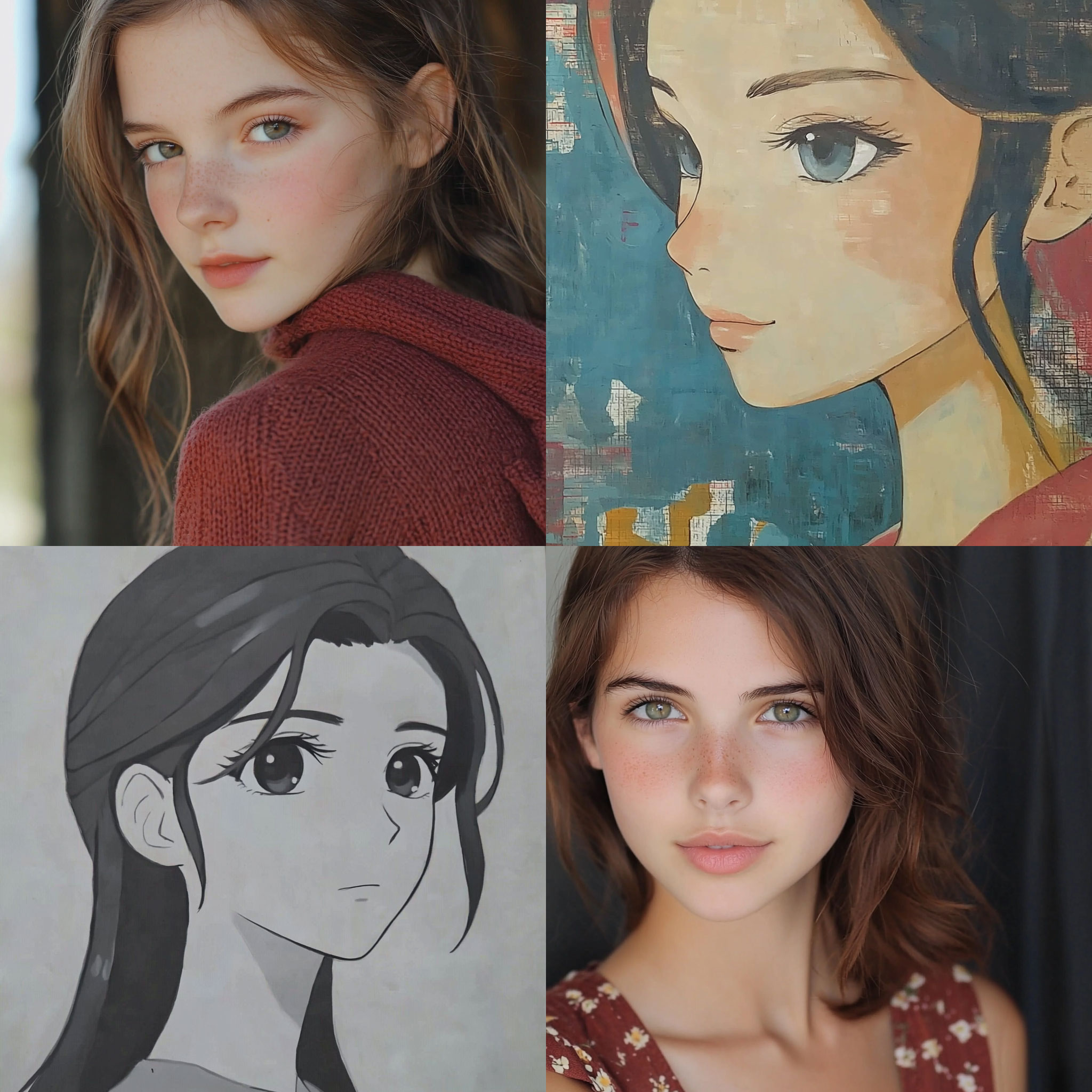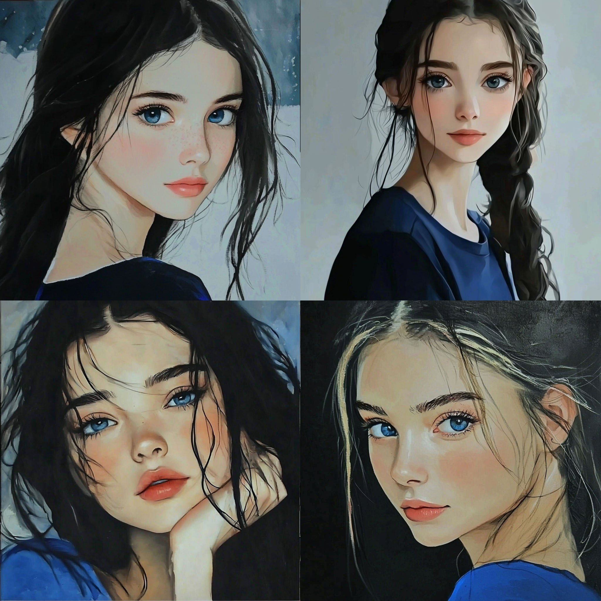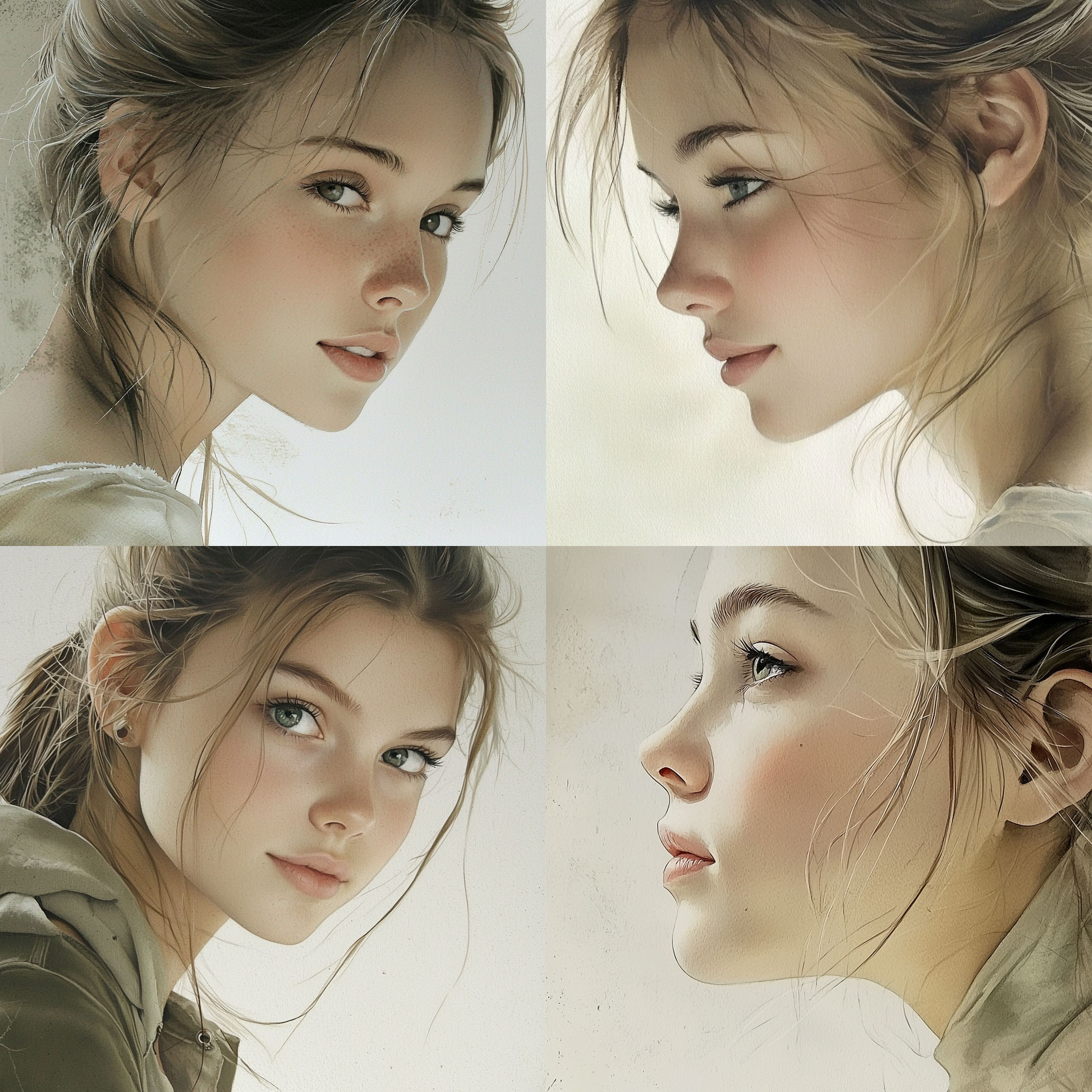 PROMPT: portraits of a girl --style raw --sref [NUMBER] --q 2 --v 6.1